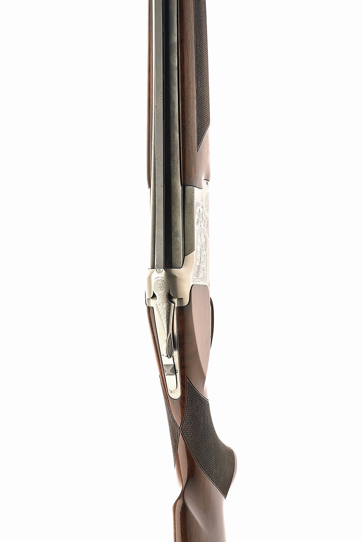 MIROKU 12-BORE 'MK-70 GAME' SINGLE-TRIGGER OVER AND UNDER EJECTOR, serial no. 53108MW, dated 2004, 30in. nitro barrels with 6mm ventilated matt top-rib, 3in. chambers, multichokes (no spares), hold-open toplever, manual safety with integral barrel selector switch, engraved with game scenes, 14 3/4in. pistolgrip stock including buttplate, weight 7lb. 11oz.