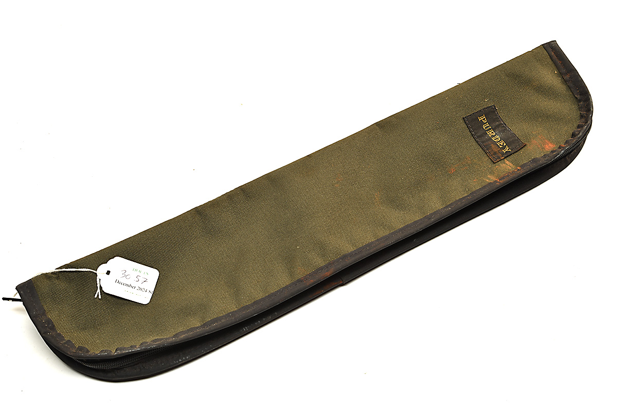 A 'PURDEY' GREEN CANVAS CLEANING KIT WALLET, includes cleaning rod, brass & mop bristle heads