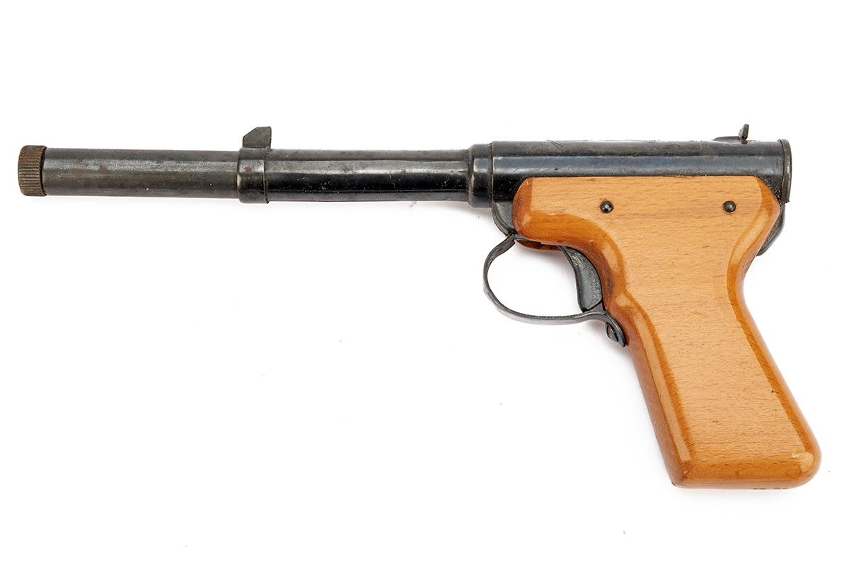 AN EARLY BOXED POST-WAR .177 MILBRO DIANA MODEL 2 AIR PISTOL, no visible serial number,