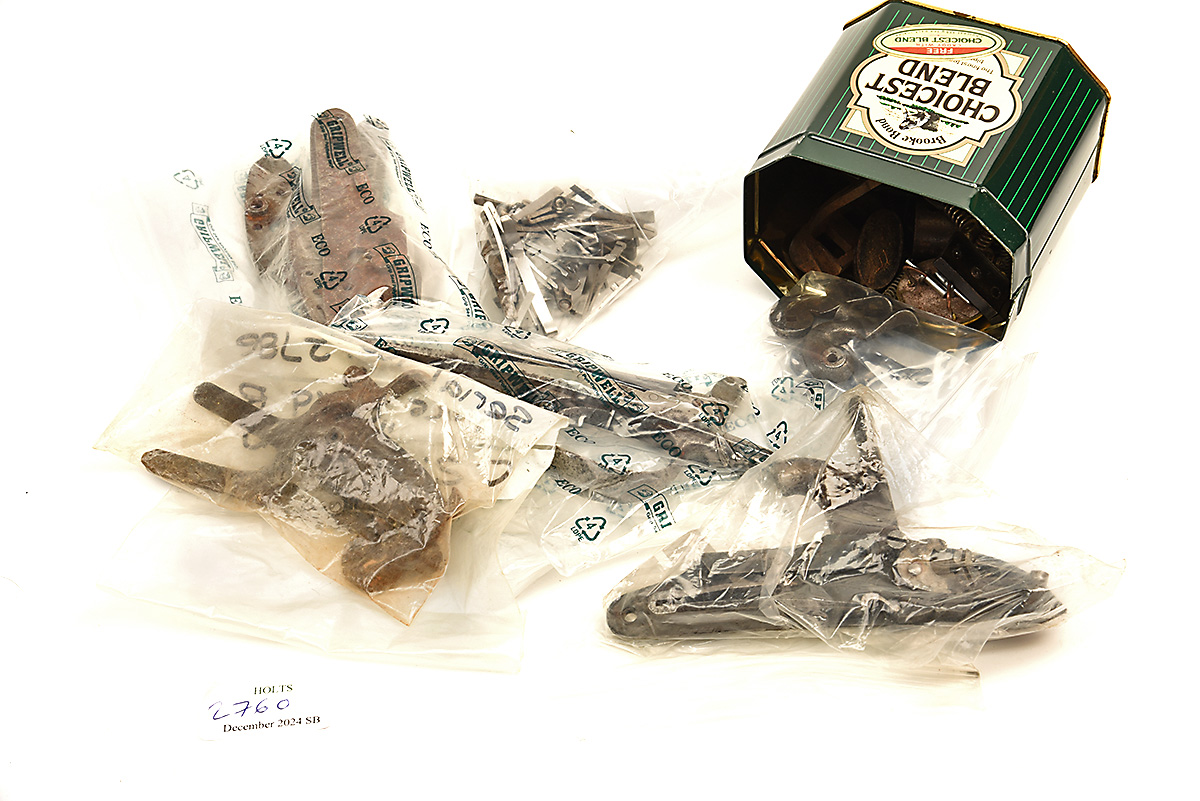A GROUP OF MIXED GUNSMITHING PARTS/SPARES, INCLUDING LOCKS, HAMMERS, SEARS, SPRINGS, etc., etc. mixed periods and conditions, includes x6 long-arm lock-plates, x3 locks, including a matched pair of early engraved percussion locks from Norwich maker Rosson, a trigger assembly, a bag of 27 various sears, etc..