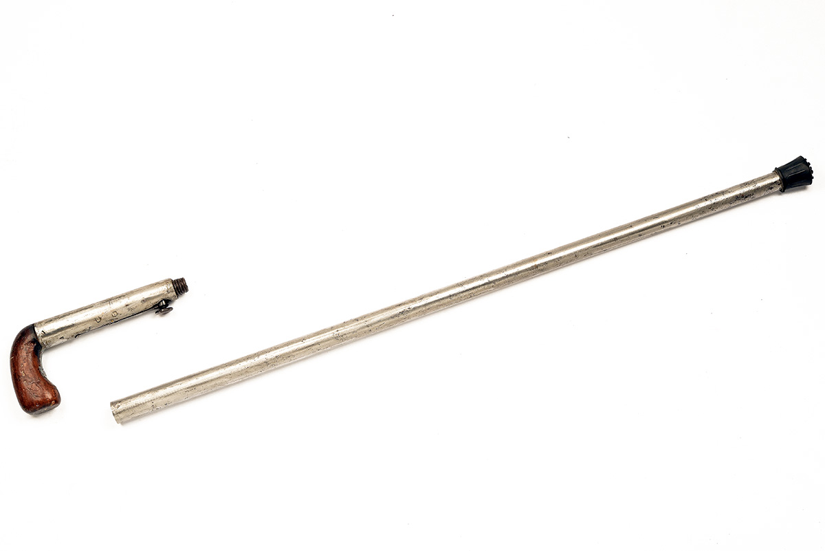 A 24-BORE PERCUSSION DAYS PATENT UNDER-HAMMER WALKING-STICK SHOTGUN, no visible serial number,