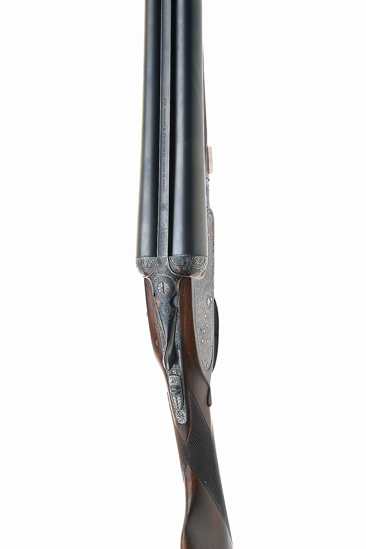 AYA 12-BORE 'NO.2 MODEL' HAND-DETACHABLE SIDELOCK EJECTOR, serial no. 553016, dated 1980, 28in. nitro chopperlump barrels, 2 3/4in. chambers, bored approx. true cyl. and 1/2 choke, removable striker discs, automatic safety with gold-inlaid 'S' detail, hand-detachable lockplates, gold-inlaid cocking-indicators, articulated front trigger, rolled-edge triggerguard, border and acanthus scroll engraving, retaining much original colour-hardening and finish, 14 3/4in. stock (pinned at head), weight 6lb. 6oz.