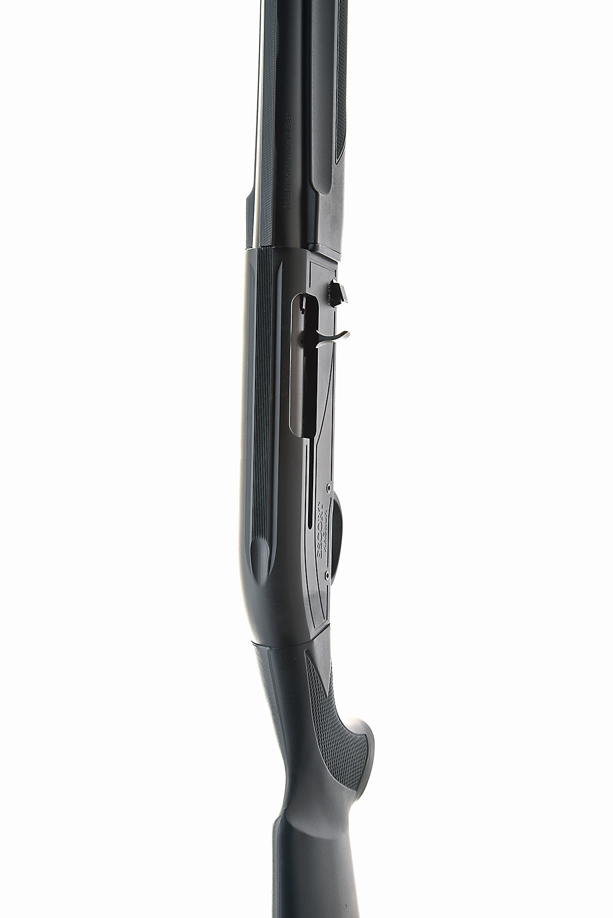 HATSAN 12-BORE (3IN.) 'ESCORT MAGNUM' SEMI-AUTO SHOTGUN, serial no. 384237, for 2013, restricted magazine, 28in. high-performance steel-shot proved nitro barrel with 7mm ventilated matt rib, 3in. chamber, multichoke (no spares), manual push-button safety, magazine cut-off switch, 14 1/2in. synthetic pistolgrip stock including ventilated rubber recoil pad