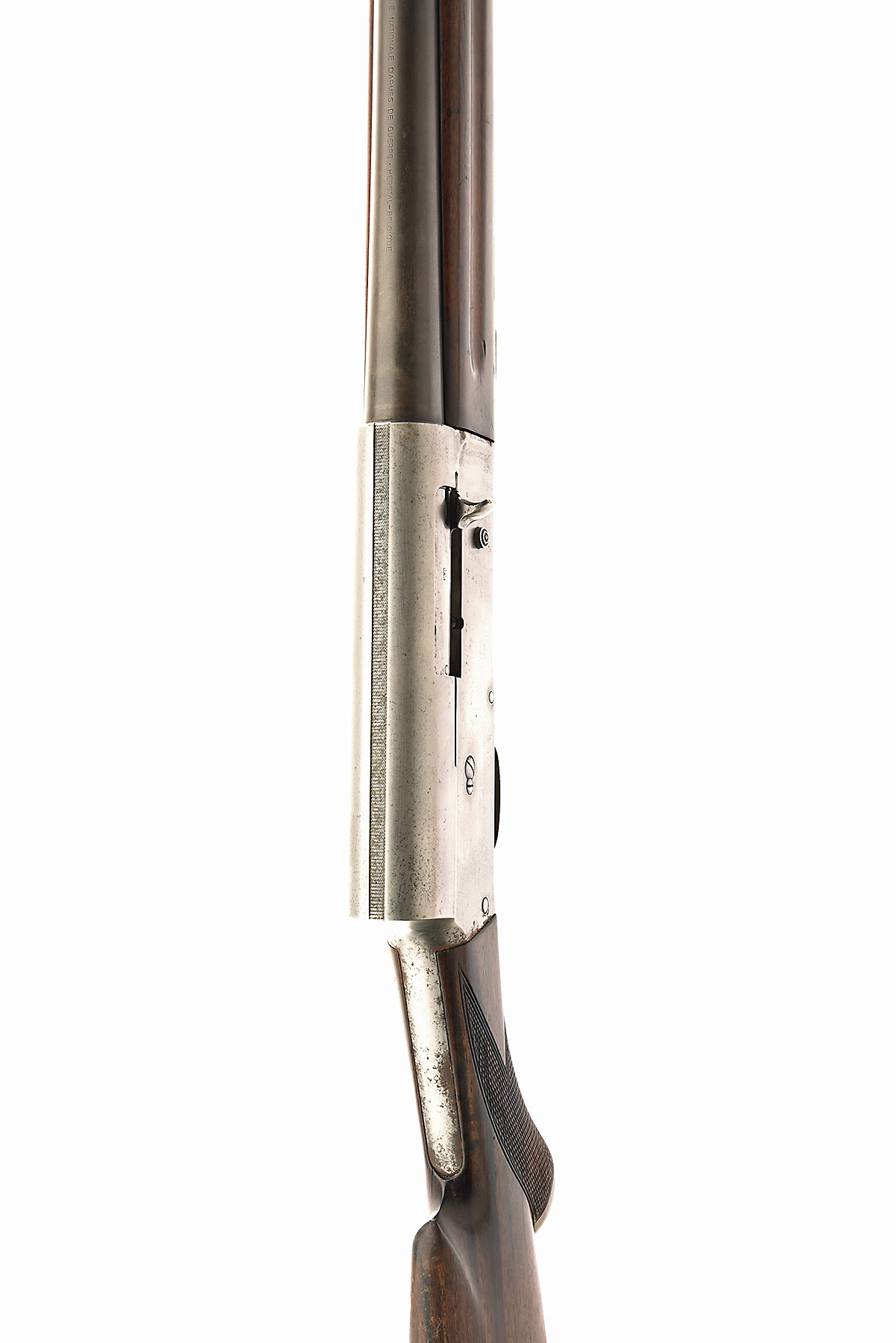F.N. BROWNING 12-BORE 'AUTO-5' SEMI-AUTO SHOTGUN, serial no. 463039, for 1957, restricted magazine, 29 1/2in. nitro ribless barrel, 2 3/4in. chamber, bored approx. 1/2 choke, manual push-button safety, magazine cut-off switch, gold-washed trigger, brushed bright finish, 14 1/4in. semi-pistolgrip stock (missing buttplate)