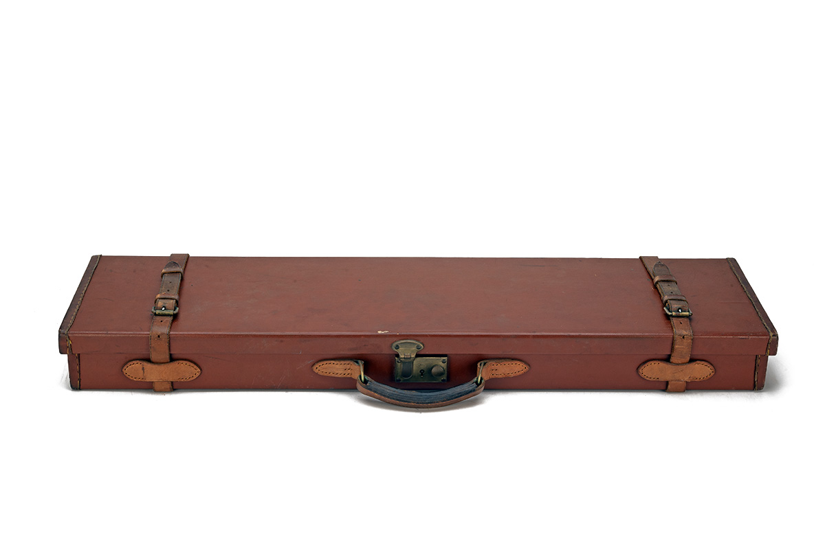 A BRADY TYPE LEATHER SINGLE GUNCASE, fitted for 31in. barrels, the interior lined with green baize, copy of a Westley Richards trade label, brass lock (including key)