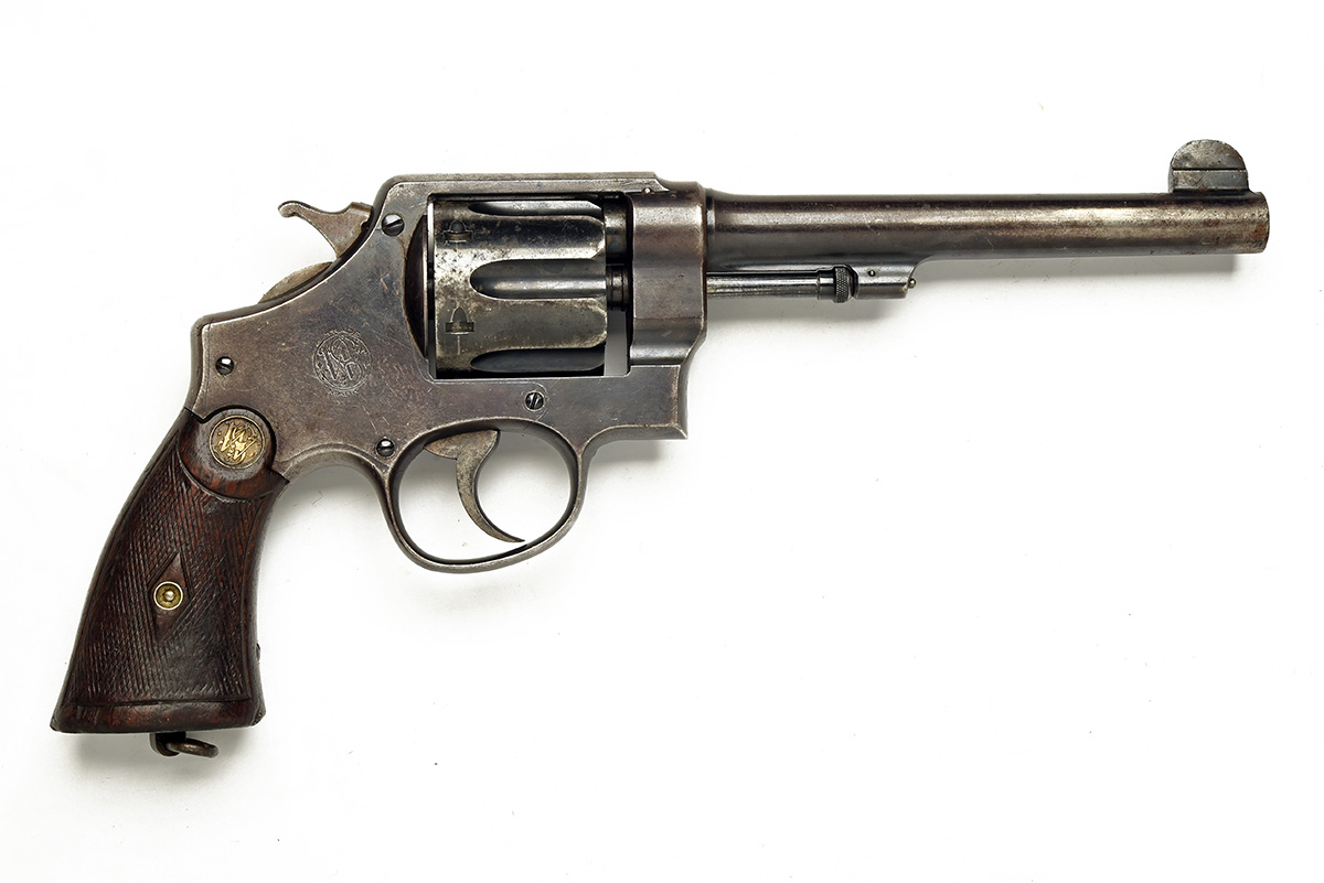 * A .455 SMITH & WESSON MKII HAND EJECTOR REVOLVER, serial no. 61003, circa 1915 with a re-issue stamp on heel of grips for 1945, with 6 1/2in. barrel, solid frame and swing-out fluted cylinder, fitted with chequered walnut grips