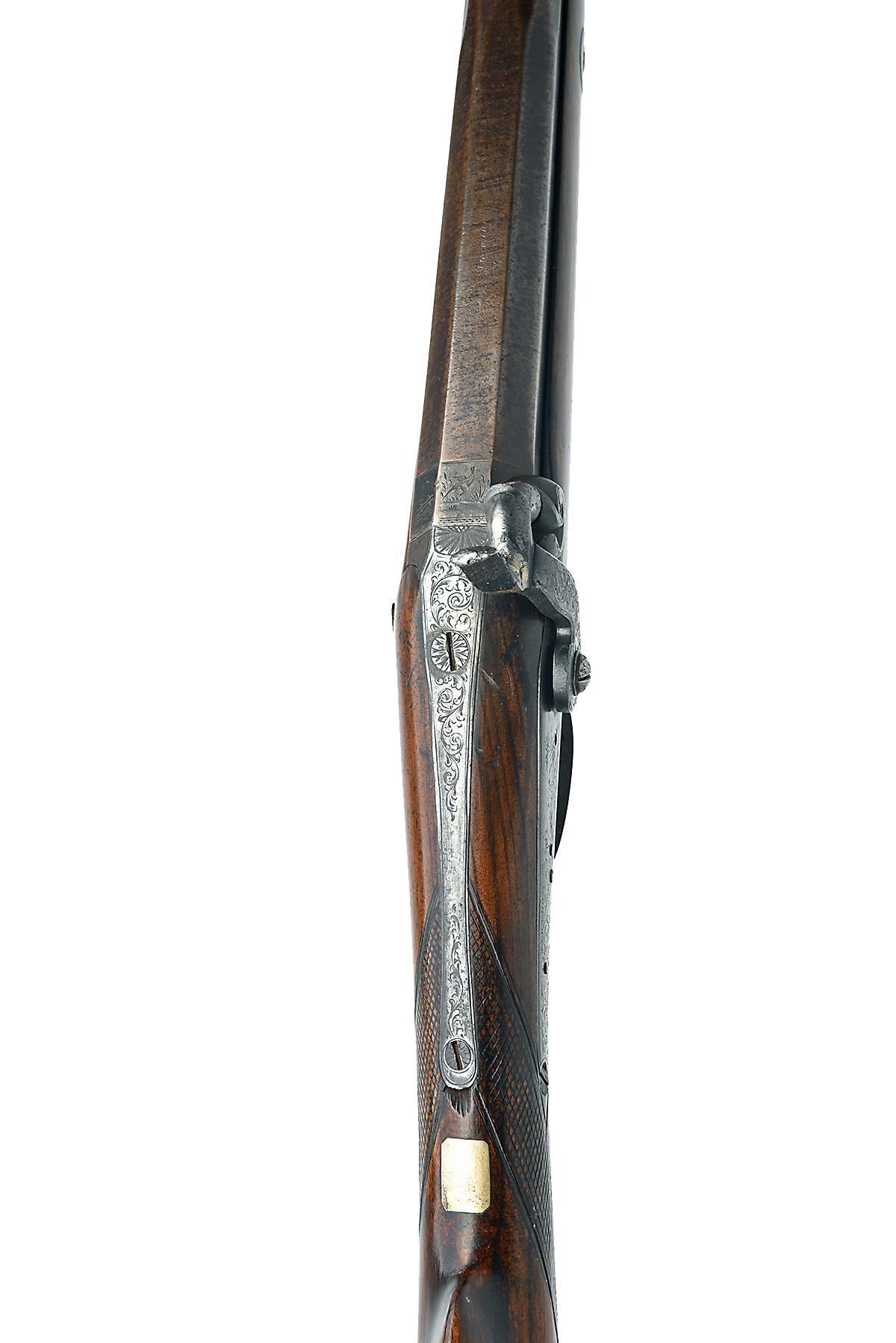 A 16-BORE PERCUSSION SINGLE-BARRELLED SPORTING-GUN SIGNED SNOWDON, ALNWICK, no visible serial number, circa 1845, with octagonal to sixteen-sided to round 31 3/4in. barrel, borderline and gamescene engraved back-action lock, walnut half-stock chequered at the wrist and ebony ramrod