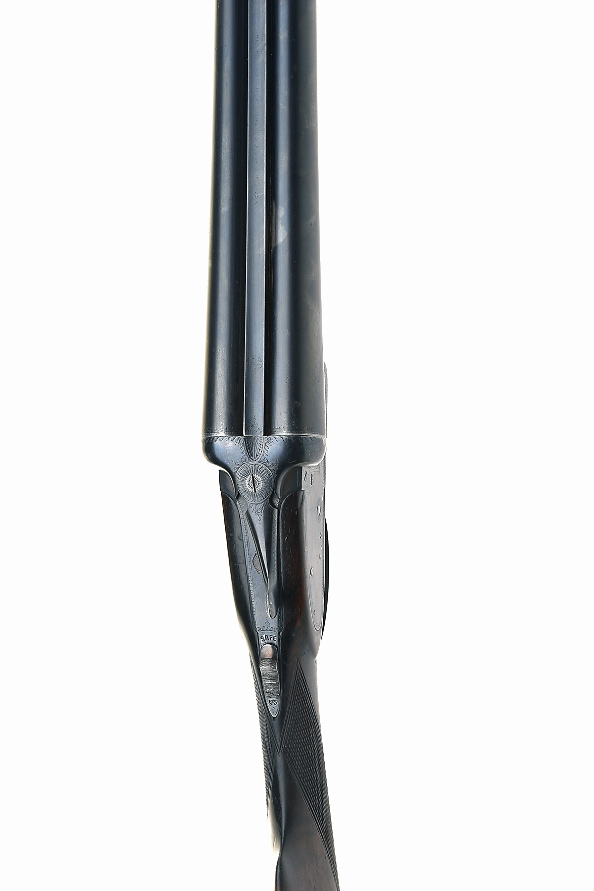 ARMY & NAVY C.S.L. 12-BORE SIDELOCK NON-EJECTOR, serial no. 43238, circa 1900, 28in. nitro reproved barrels (in 1961), 'ARMY & NAVY. 105. VICTORIA ST.. LONDON.', (faint), 2 1/2in. chambers, bored approx. imp. cyl. and 1/4 choke, automatic safety with engraved 'SAFE' detail, border engraving, re-blued finish, 14in. figured stock including buttplate, weight 6lb. 11oz., in its canvas and leather guncase