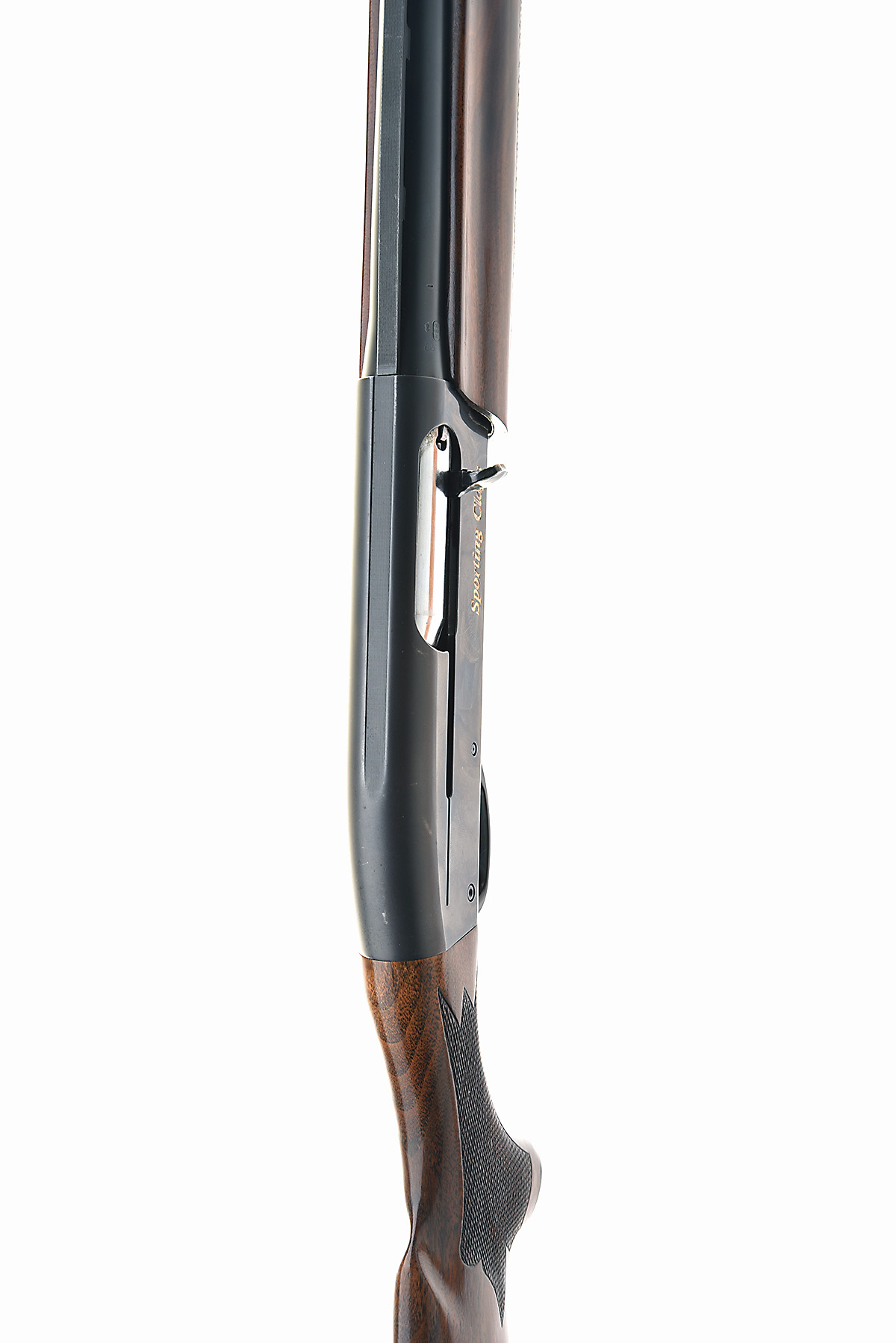 REMINGTON 12-BORE 'MODEL 11-87 SPORTING CLAYS' SEMI-AUTO SHOTGUN, serial no. PC370304, for 1992, restricted magazine, 27 1/2in. (70cm) nitro barrel with 7mm ventilated matt rib, 2 3/4in. chamber, multichoke (no spares), manual safety, gold washed trigger, blacked action with makers name and model number gold-inlaid, 14 1/2in. ornately chequered pistolgrip stock including rubber recoil pad, weight 8lb. 1oz.
