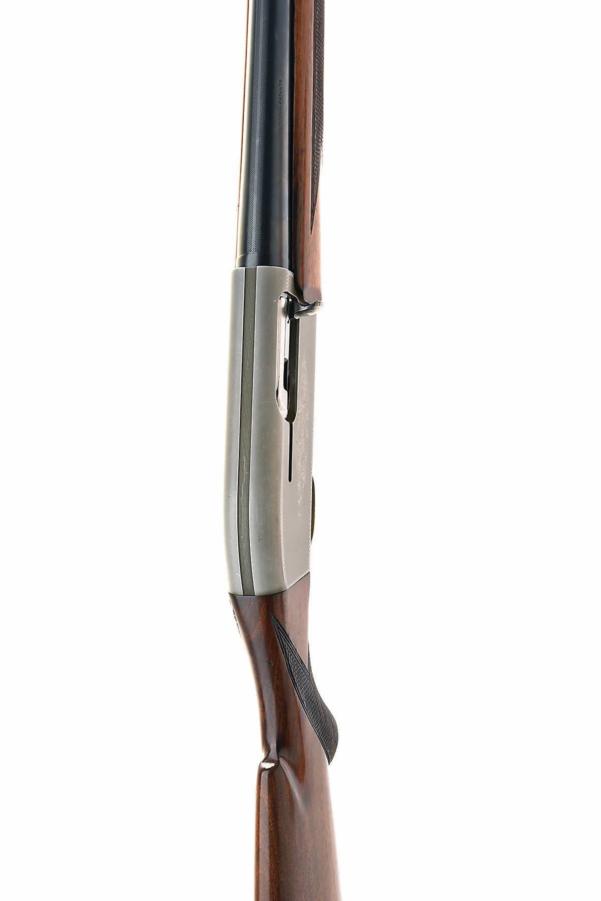 FABRIQUE NATIONAL 12-BORE 'DOUBLE-AUTOMATIC TWELVETTE' SEMI-AUTO SHOTGUN, serial no. A37746, for 1954, 27 1/2in. nitro barrel with 6mm matted sight rib, 2 3/4in. chamber, bored approx. full choke, manual roller safety, gold-washed trigger, matt finish grey receiver engraved with filiciform detailing and zig-zag bordering, 14 1/2in. pistolgrip stock including trademark buttplate, weight 7lb. 1oz.
