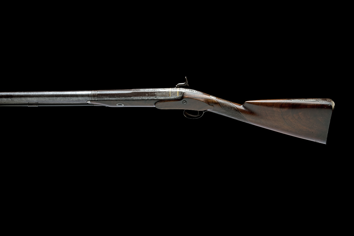 A 6-BORE PERCUSSION FOWLING PIECE SIGNED T. MONCK JUNIOR, STAMFORD, no visible serial number,