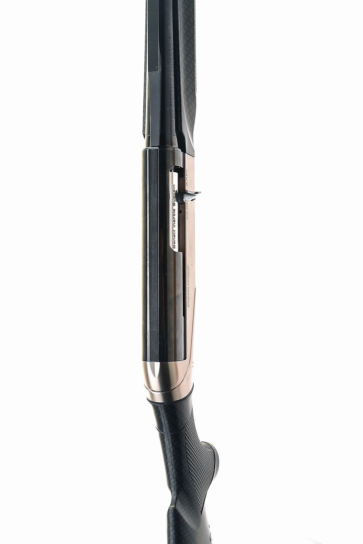 BENELLI ARMI S.P.A. 12-BORE (3IN.) 'SUPERSPORT' SEMI-AUTO SHOTGUN, serial no. F326169S14, for 2014, 27 1/2in. (70cm) nitro 'Crio' barrel with 9mm raised ventilated matt rib, multichoke (with spares), barrel numbered 0066236 / C1279565G14, manual push-button safety, magazine cut-off switch, brushed steel receiver with blued upper, 14in. carbon-fibre effect synthetic stock including rubber recoil pad, sling eyes. weight 7lb. 3oz., in its makers universal ABS case with some paperwork and accessories