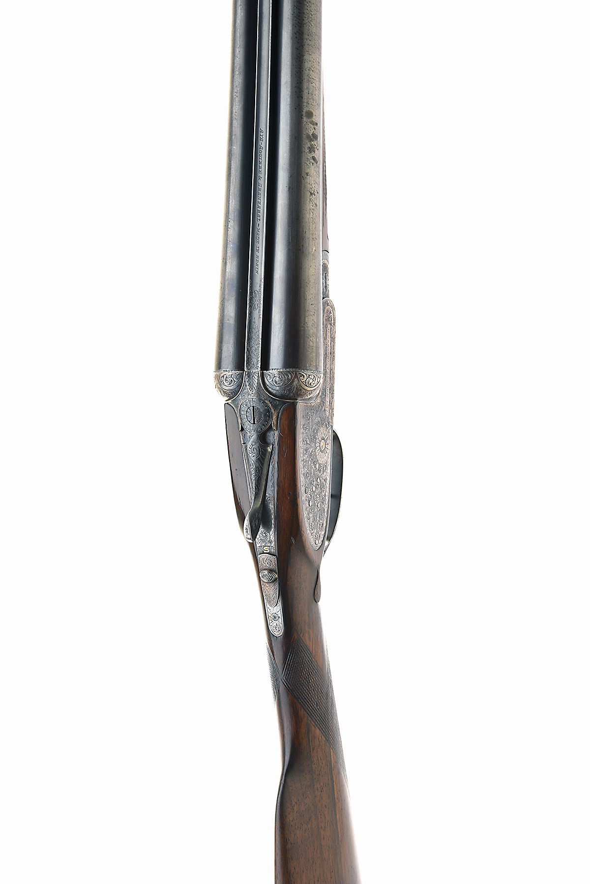 AYA 12-BORE 'NO.2 MODEL' HAND-DETACHABLE SIDELOCK EJECTOR, serial no. 186061, dated 1966, 28in. nitro barrels, 2 3/4in. chambers, bored approx. imp. cyl. and 1/2 choke, removable striker discs, automatic safety with gold-inlaid 'S' detail, hand-detachable lockplates, gold-inlaid cocking-indicators, border and acanthus scroll engraving, rolled-edge triggerguard, retaining some original colour-hardening and finish, 15 3/4in. stock including 5/8in. extension, weight 7lb. 2oz.