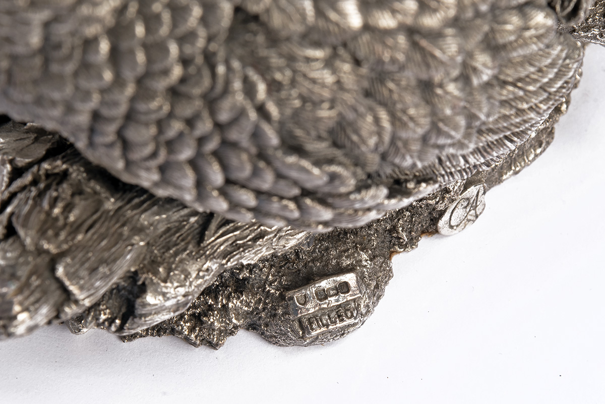 A STERLING SILVER PHEASANT, measuring approx. 11in. x 3i 1/2in. x 3in.