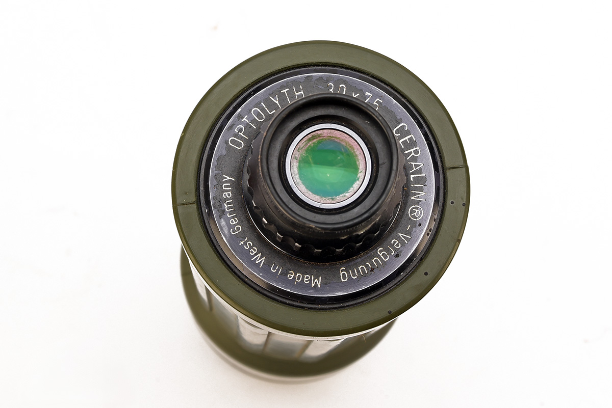 A 'OPTOLYTH' CERALIN 30X75 SINGLE DRAW SPOTTING SCOPE IN LEATHER CARRY CASE, made in West Germany, approx. 18 1/2in. length (extended), rubberised finish, with tripod mounting screw fitting and leather carry case