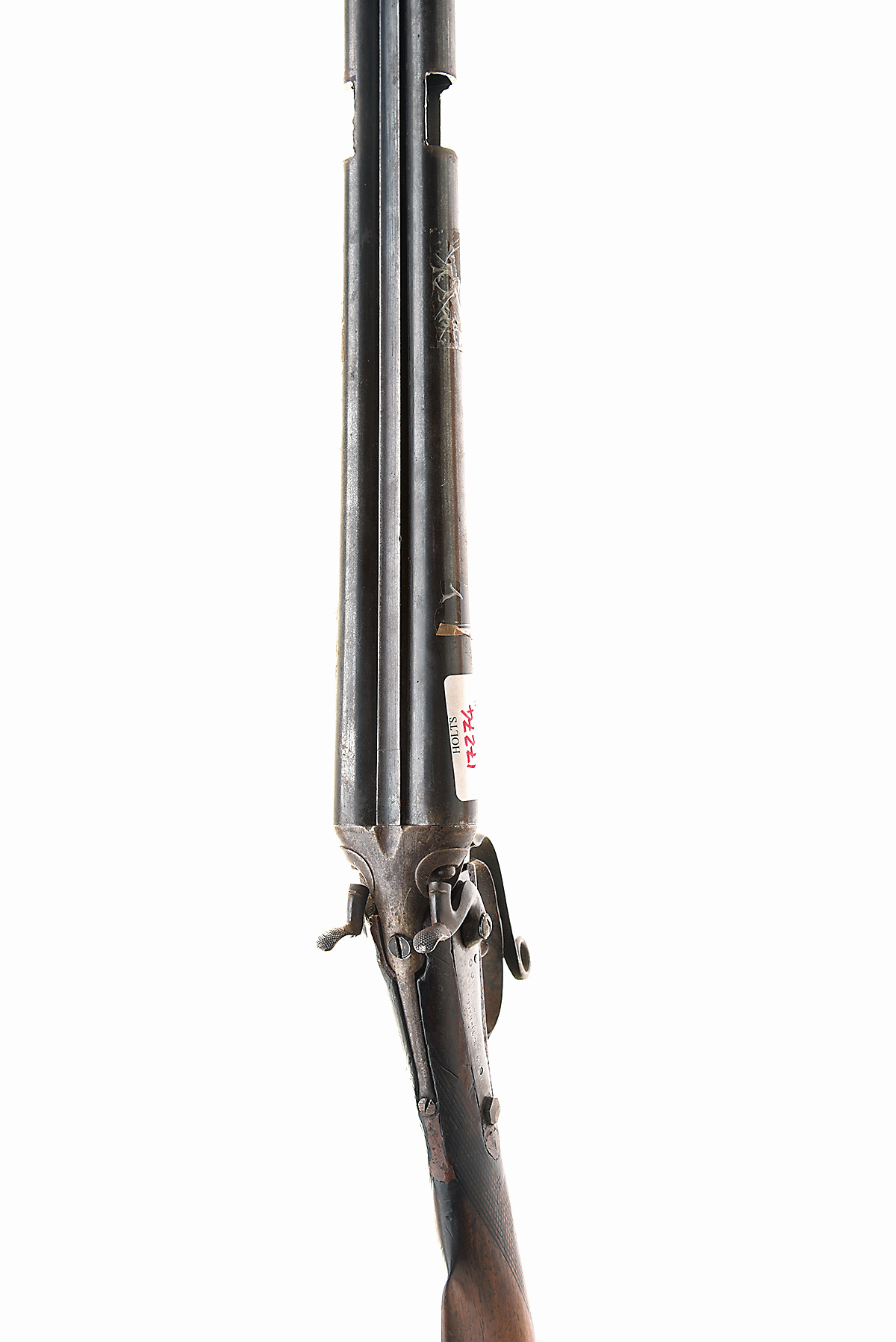 THE STOCK, ACTION AND FORE-END ONLY OF A W.H. TISDALE 12-BORE ROTARY UNDERLEVER HAMMERGUN, serial no. 1247, circa 1880, barrels originally nitro proved, windows already cut in barrels