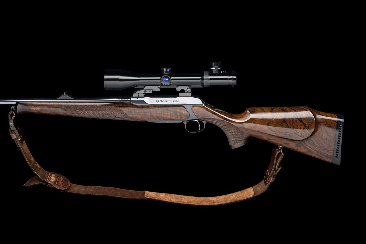 23 3/4in. nitro barrel with block-mounted open sights and ramp-mounted blade fore-sight, the receiver mounted with a Zeiss Varipoint VM 2,5-10x50 T* illuminated reticle telescopic sight, serial no. 2941008, in quickly-detachable Apel pivot mounts, Niggeloh neoprene scope cover, modular design (extensive interchangeablilty with other calibres), detachable box magazine (with spare magazine in a leather pouch), set trigger, silent push button safety with triggerguard mounted 'off' button, highly-figured pistolgrip stock with cheekpiece, monte carlo comb, quickly-detachable sling swivels, 14 1/8in. pull including ventilated rubber recoil pad, weight 8lb. 2oz. (unscoped) and 9lb. 14oz. (with scope), in a padded slip, together with an instruction manual
