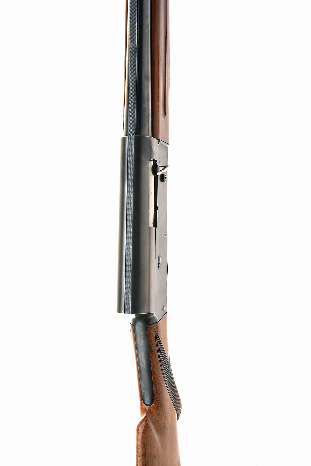 F.N. BROWNING 12-BORE 'AUTO-5' SEMI-AUTOMATIC SHOTGUN, serial no. 456611, for 1955, restricted magazine, 27 1/2in. nitro barrel with 7mm raised ventilated matt rib, including 'Ply choke', 2 3/4in. chamber, manual push-button safety, magazine cut-off switch, plain blacked action, 14 3/8in. semi-pistolgrip stock including trademark buttplate, sling swivels, weight 8lb. 10oz.