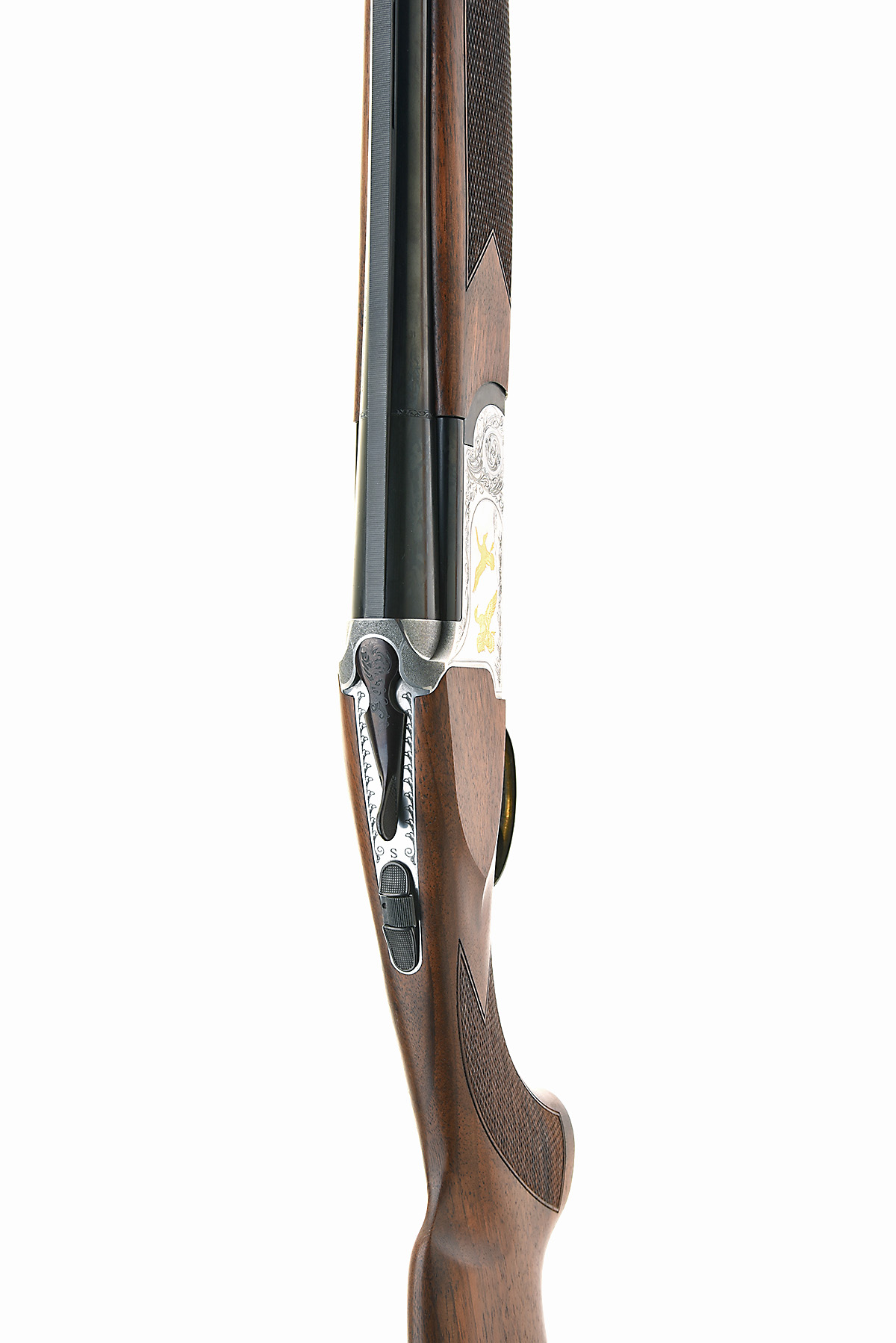 LINCOLN 12-BORE 'PREMIER' SINGLE-TRIGGER OVER AND UNDER EJECTOR, serial no. 300028, dated 2017, 28in. high performance steel proof nitro barrels with 7mm ventilated matt top-rib, 3in. chambers, multichokes (with spares), hold-open toplever, automatic safety with integral barrel selector switch, gold-washed single trigger, acanthus scroll engraving with gold-highlighted scenes of game, 14 1/2in. pistolgrip stock including buttplate, weight 7lb. 5oz., in its makers universal case
