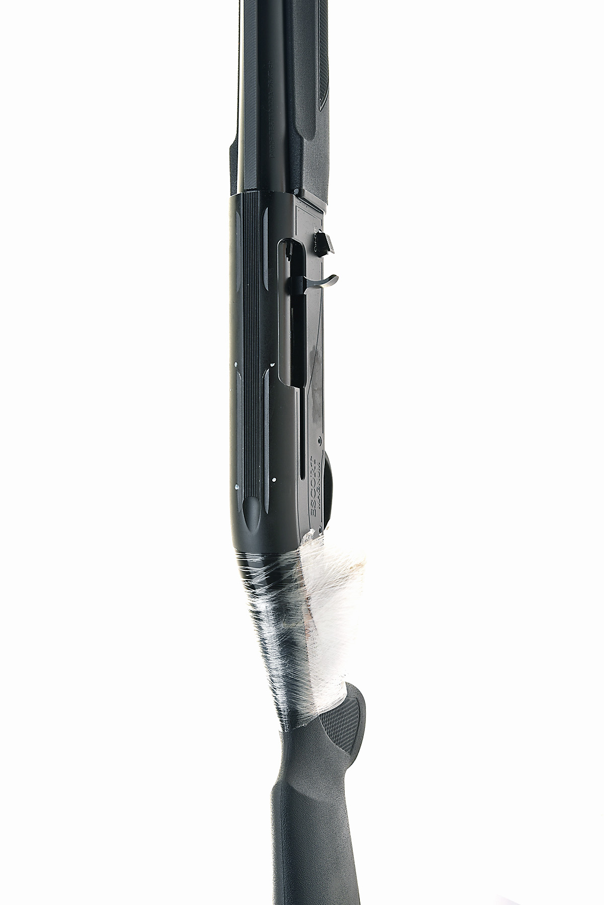 HATSAN 12-BORE (3IN.) 'ESCORT MAGNUM' SEMI-AUTOMATIC SHOTGUN, serial no. 464744, for 2017, restricted magazine, 28in. high-performance steel-shot proved nitro barrel with 7mm ventilated matt rib, 3in. chamber, multichoke (with spares), manual push-button safety, magazine cut-off switch, 15in. synthetic pistolgrip stock including ventilated rubber recoil pad, the whole in matt black finish