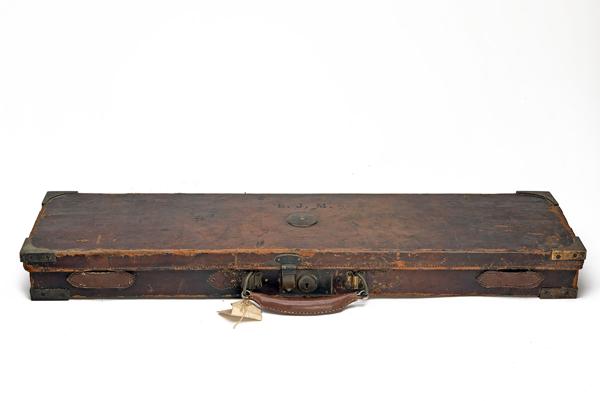 A CHARLES BOSWELL BRASS-CORNERED LEATHER SINGLE HAMMERGUN CASE,