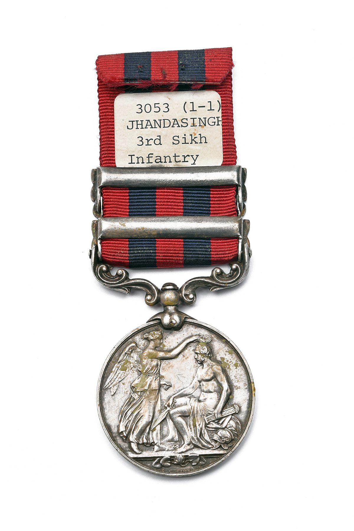 AN INDIA GENERAL SERVICE MEDAL (1854) WITH WAZIRISTAN 1894–95 AND SAMANA 1891 CLASPS, clear engraving to '1069 Sepoy Jhandra Singh, 3rd Sikh Inf'y', some light edge-knocks only