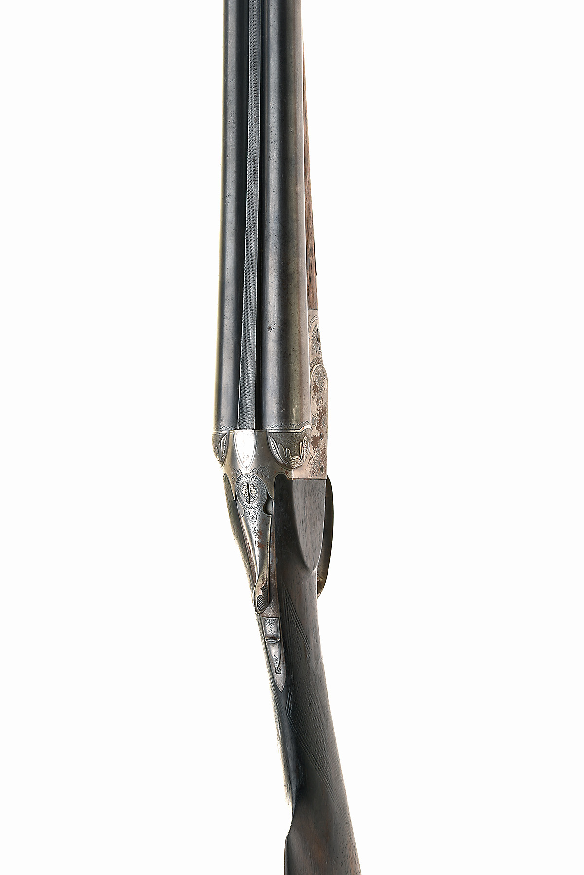 FRENCH 16-BORE BOXLOCK NON-EJECTOR, serial no. 46559, 27 5/8in. nitro barrels, 2 1/2in. chambers, 2 1/2in. chambers, bored approx. 1/4 and 1/2 choke, sideclipped treble-grip action with hidden third bite, manual safety, border and partial scroll engraving, 14 1/4in. stock (cracked and repaired at hand) including 1in. ventilated rubber recoil pad