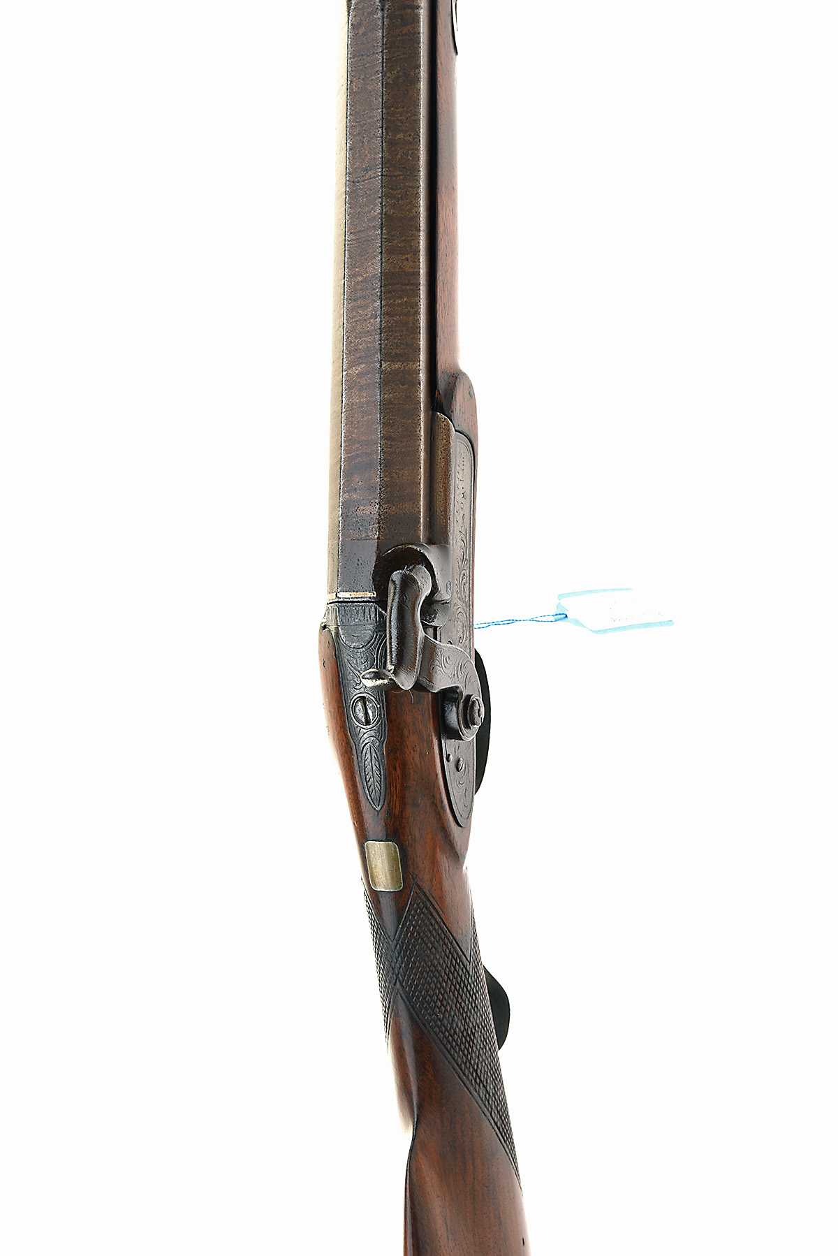 A 12-BORE PERCUSSION SINGLE-BARRELLED SPORTING-GUN SIGNED TEASDALE, DURHAM, no visible serial number,