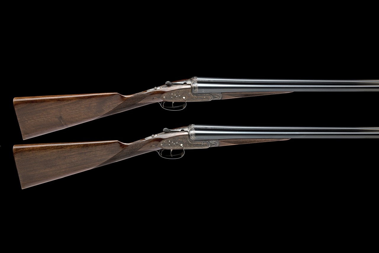 for 1996, 27in. nitro chopperlump barrels, 2 3/4in. chambers, bored approx. imp. cyl. and 1/2 choke, No. 534 left wall at 15, engraved arcaded fences, removable striker discs, automatic safeties, hand-detachable lockplates, gold-inlaid cocking-indicators, articulated front triggers, rolled-edge triggerguards, acanthus scroll engraving, retaining much colour-hardening and finish, 14 7/8in. stocks, weight 6lb. 2oz. (No. 530) and 5lb. 14oz. (No. 534), in a modern universal motor case