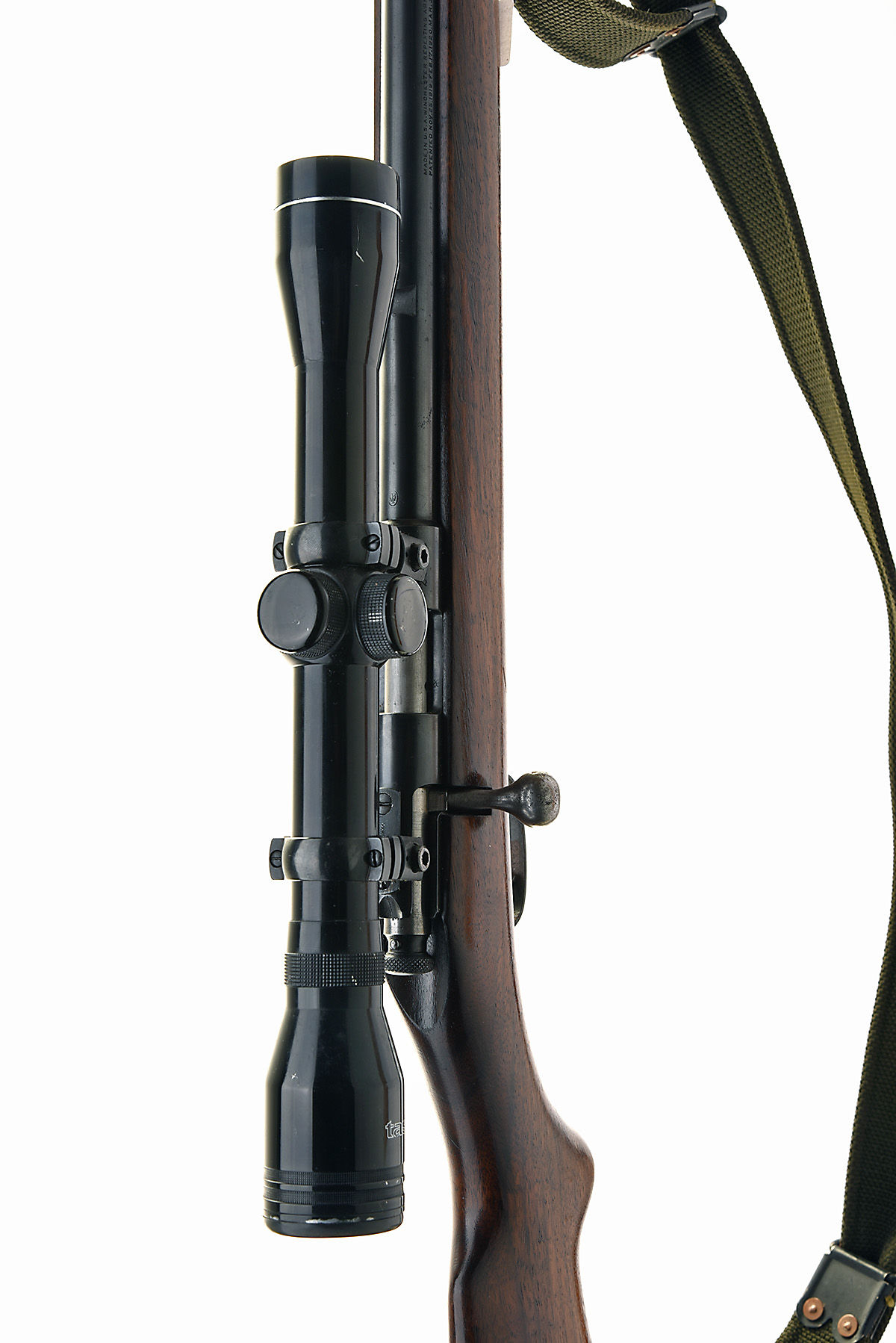 WINCHESTER .22 L.R. 'MODEL 57' BOLT-MAGAZINE SPORTING RIFLE, serial no. 23943, circa 1930, 20in. nitro barrel, threaded at the muzzle, sights missing, fitted with a Silver Antler 4x35 telescopic sight, no safety, detachable magazine, pistolgrip stock, canvas sling