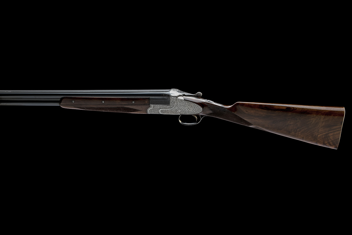 for October 1966, 28in. nitro barrels with 8mm solid matt top-rib, 2 3/4in. chambers, bored approx. 1/4 and 1/2 choke, three-piece fore-end, bolstered action with hold-open toplever, manual safety, hand-detachable lockplates with concealed flush-fitting release lever, cocking-indicators, single-trigger with barrel selector switch marked 'O' and 'U', the action, lockplates and furniture fully engraved with bold stylised acanthus scrollwork on a matt background, bright and blued finish, 15 1/8in. stock including 2 1/8in. wooden extension, weight 7lb. 6oz.