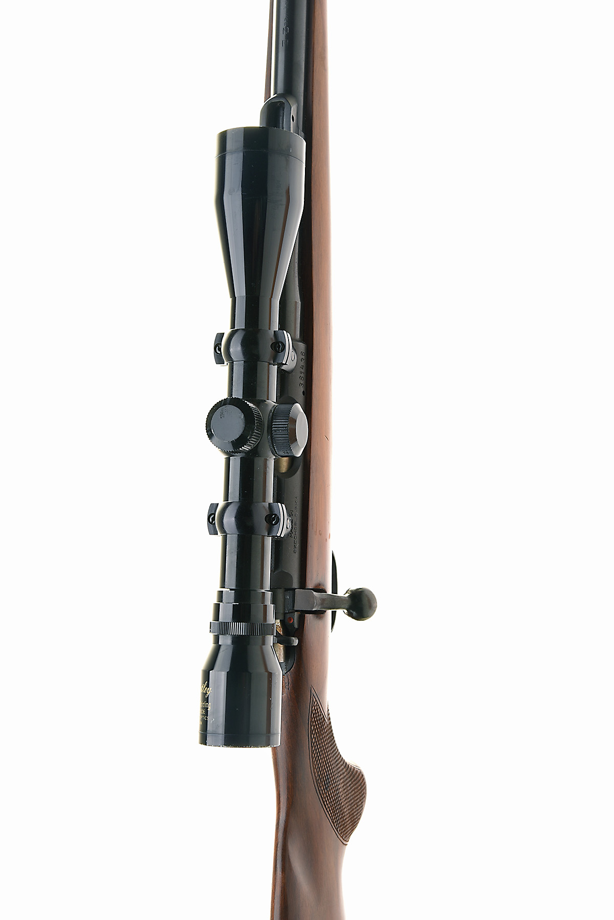CZ .22 L.R. 'MOD 2-E' BOLT-MAGAZINE SPORTING RIFLE, serial no. 361436, for 1985, 243/4in. nitro barrel, threaded at the muzzle, ramp-mounted blade fore-sight, rear-sight missing, fitted with a Bentley 4x40 telescopic sight, manual safety, detachable magazine, pistolgrip stock