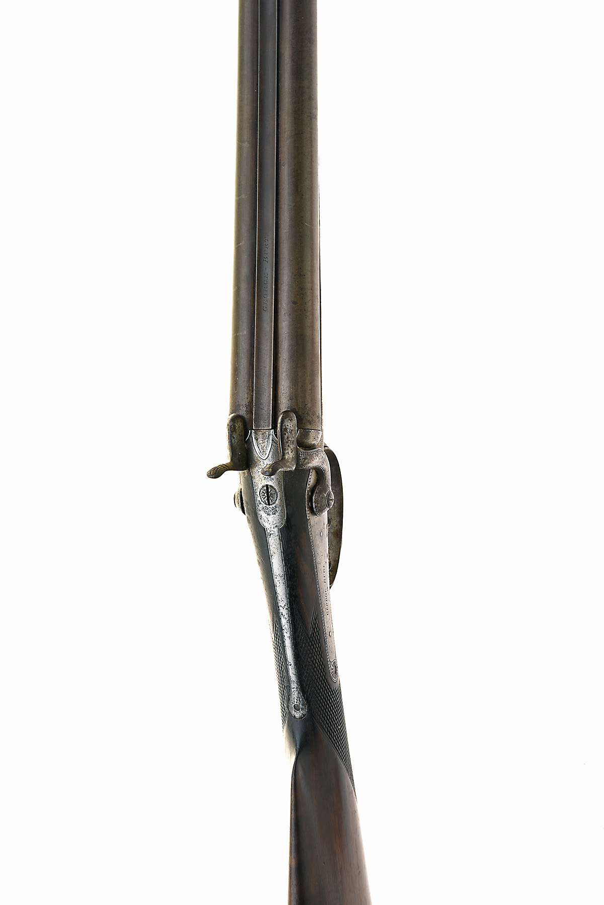 A 16-BORE PINFIRE DOUBLE BARRELLED SPORTING-GUN SIGNED GEORGE BURT, no visible serial number,