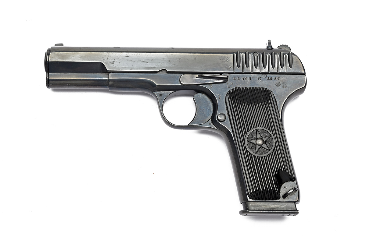 UK BUYERS ONLY A DEACTIVATED 7.62X25 (TOK) SEMI-AUTOMATIC TOKAREV SERVICE-PISTOL, serial no. 44098, dated for 1937, with 4 1/2in. barrel, blued slide, blued frame and ribbed black plastic grips, in a leather holster with spare magazine and some dummy rounds, much finish remaining, with its EU deactivation certificate