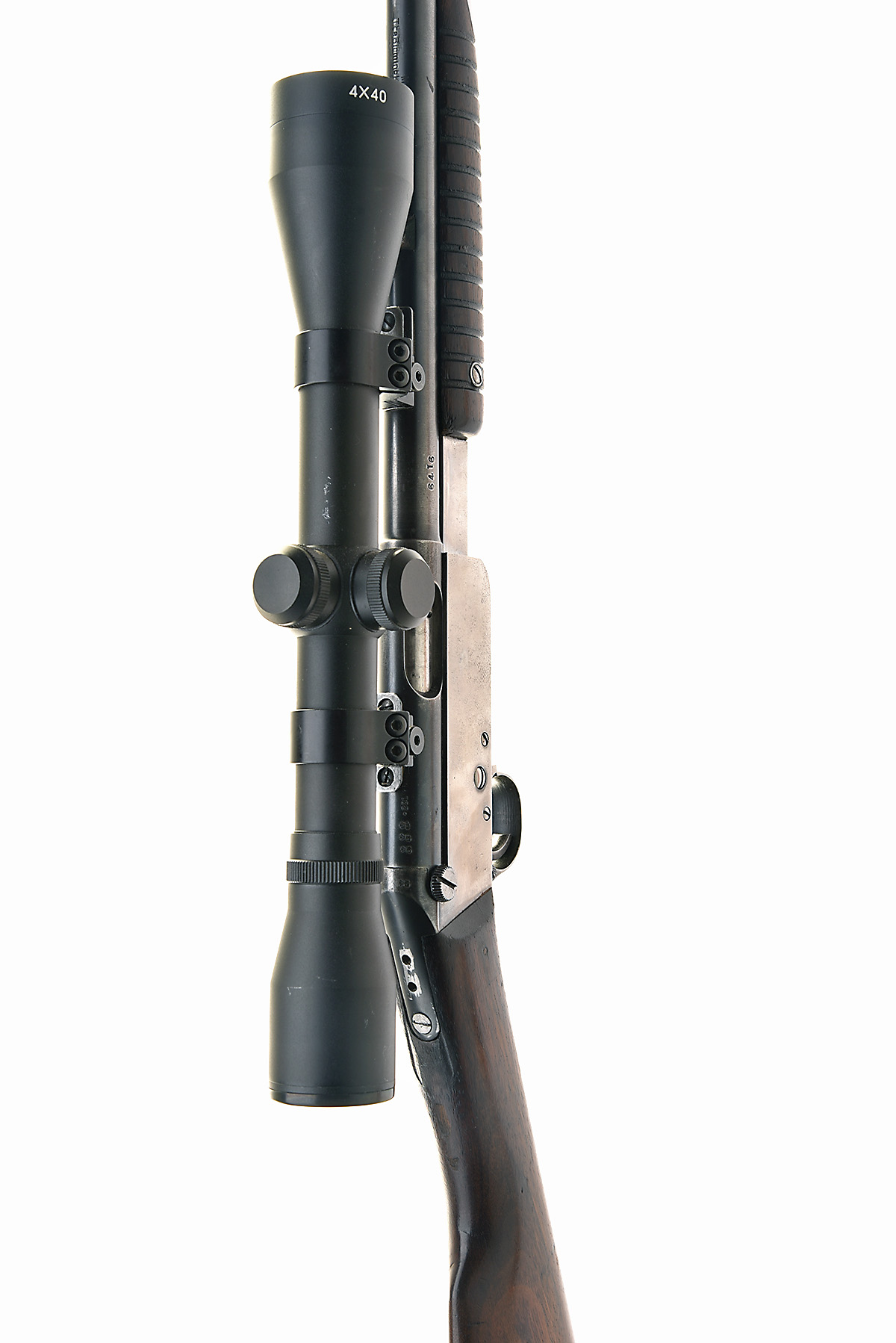 B.S.A. .22 CALIBRE TAKE-DOWN PUMP-ACTION REPEATING RIFLE, serial no. 6416, circa 1930, 21 10/2in. nitro barrel, threaded at the muzzle, bead fore-sight, rear-sight missing, fitted with a richter Optik 4x40 telescopic sight, manual safety, tubular magazine, straight stock