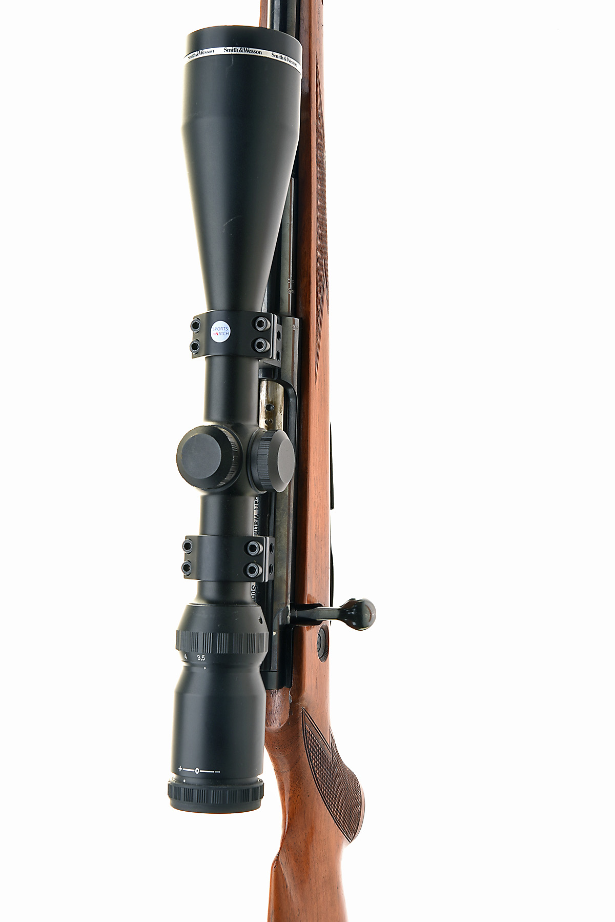 CARL WALTHER .22 HORNET BOLT-MAGAZINE SPORTING RIFLE, serial no. 45198, circa 1961, 21in. nitro barrel, threaded at the muzzle, fitted with a Smith & Wesson 3.5-10x50 telescopic sight, manual safety, detachable magazine, pistolgrip stock with cheekpiece, sling swivels