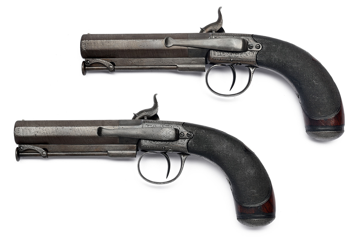 A PAIR OF 28-BORE PERCUSSION SIDE-HAMMER BELT PISTOLS SIGNED TATHAM, LONDON, no visible serial numbers,