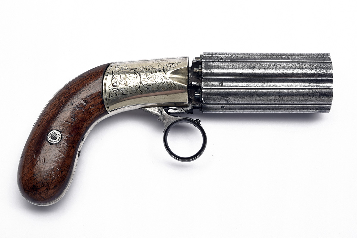 AN 80-BORE PERCUSSION COOPER'S PATENT PEPPERBOX REVOLVER SIGNED WILLIAMS & POWELL, no visible serial number,