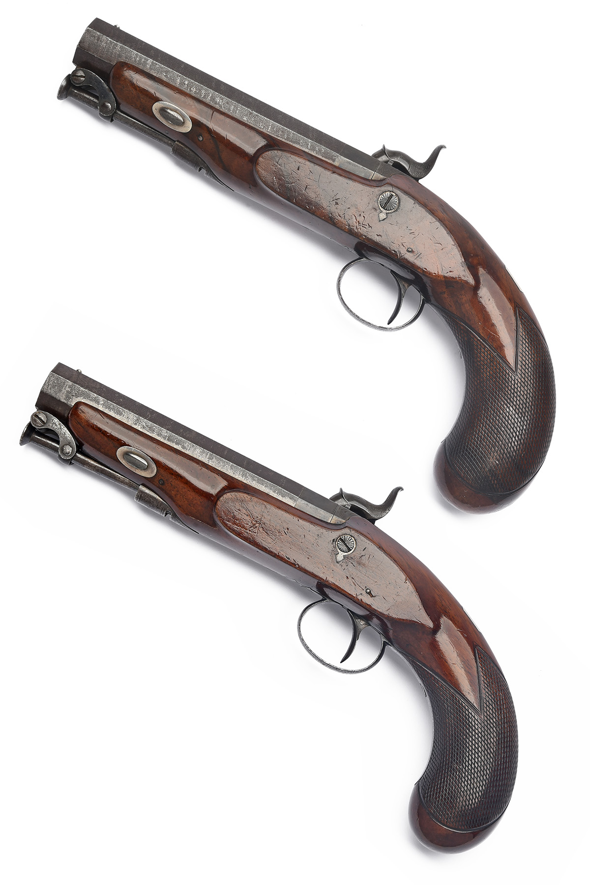 A PAIR OF 40-BORE PERCUSSION OVERCOAT PISTOLS SIGNED FENTON, LONDON, no visible serial numbers,