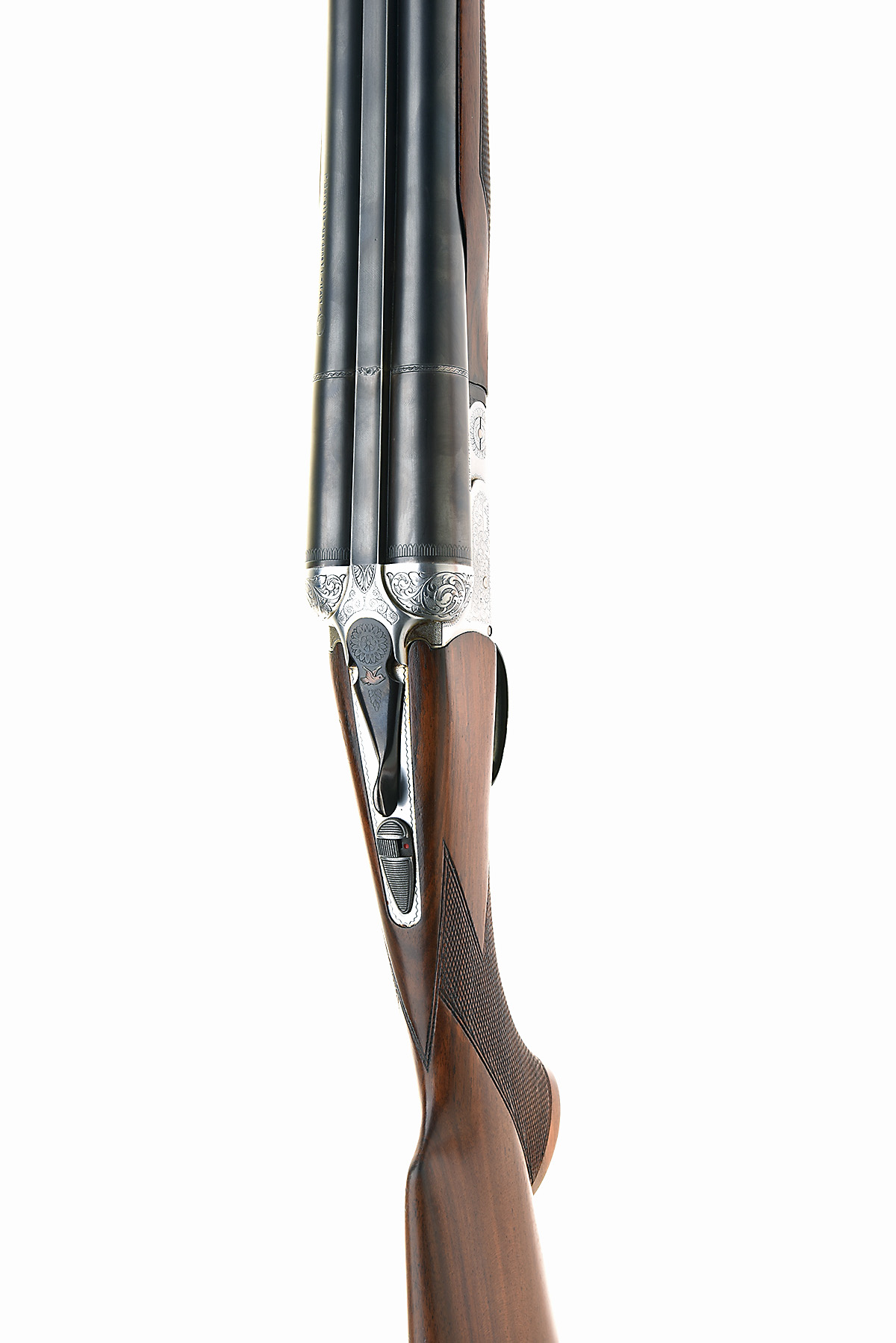 P. BERETTA 12-BORE 'MOD. 626E' SINGLE-TRIGGER BOXLOCK EJECTOR, serial no. A34019A, dated 1985, 28in. nitro barrels, 2 3/4in. chambers, bored approx. true cyl. in both, scoop-back action, manual safety with integral barrel selector switch, border and partial scroll engraving with floral motifs, silver finish, 14in. pistolgrip stock including buttplate, weight 6lb. 9oz.