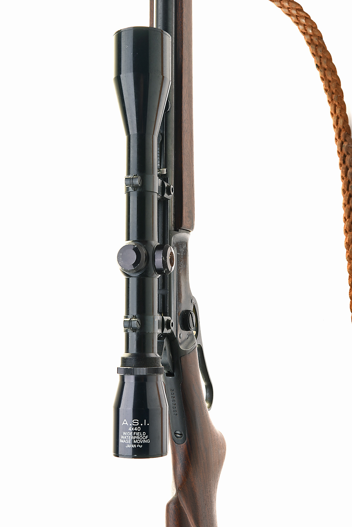 MARLIN .22 L.R. 'ORIGINAL GOLDEN-39A' LEVER-ACTION REPEATING TAKE-DOWN SPORTING RIFLE, serial no. 23267357, circa 1975, 24in. nitro barrel, ramp-mounted bead fore-sight, leaf rear-sight, fitted with an A.S.I. 4x40 telescopic sight, half-cock safety, tubular magazine, pistolgrip stock, leather sling