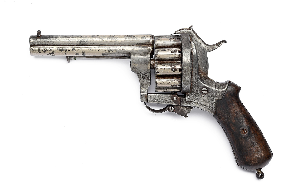 A RARE 7mm PINFIRE DOUBLE-BARRELLED TWENTY-SHOT LEFAUCHEUX PATENT REVOLVER, serial number obscured,