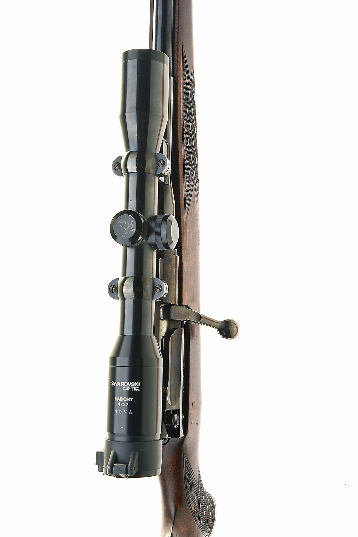 MAUSER .30-06 'MOD 66' BOLT-MAGAZINE SPORTING RIFLE, serial no. G05583, circa 1970, 24 1/2in. nitro barrel, hooded ramp-mounted blade fore-sight,no rear-sight, fitted with a Swarovski optik Habicht 4x32 Nova telescopic sight, manual safety, set triggers, internal magazine, well-figured pistolgrip stock, recoil pad and cheekpiece, sling swivels