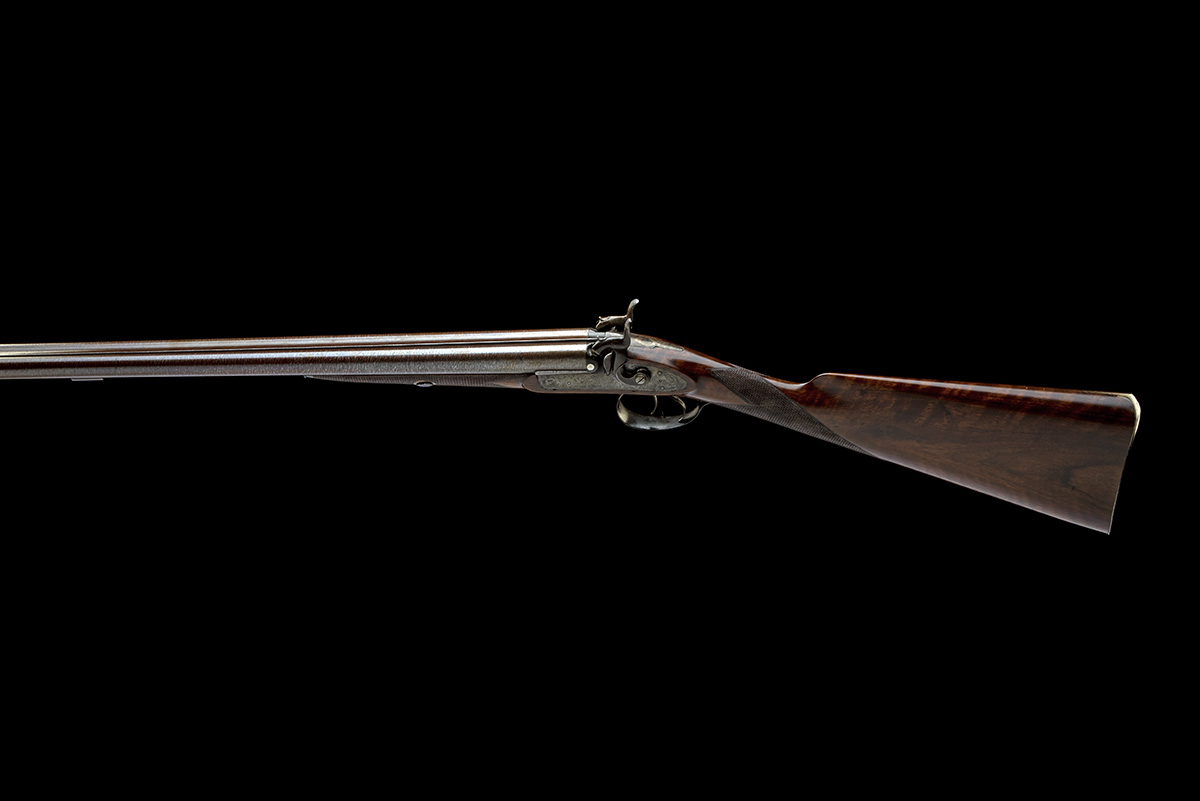 A 16-BORE PERCUSSION DOUBLE-BARRELLED SPORTING GUN SIGNED JOSEPH MANTON, no visible serial number,