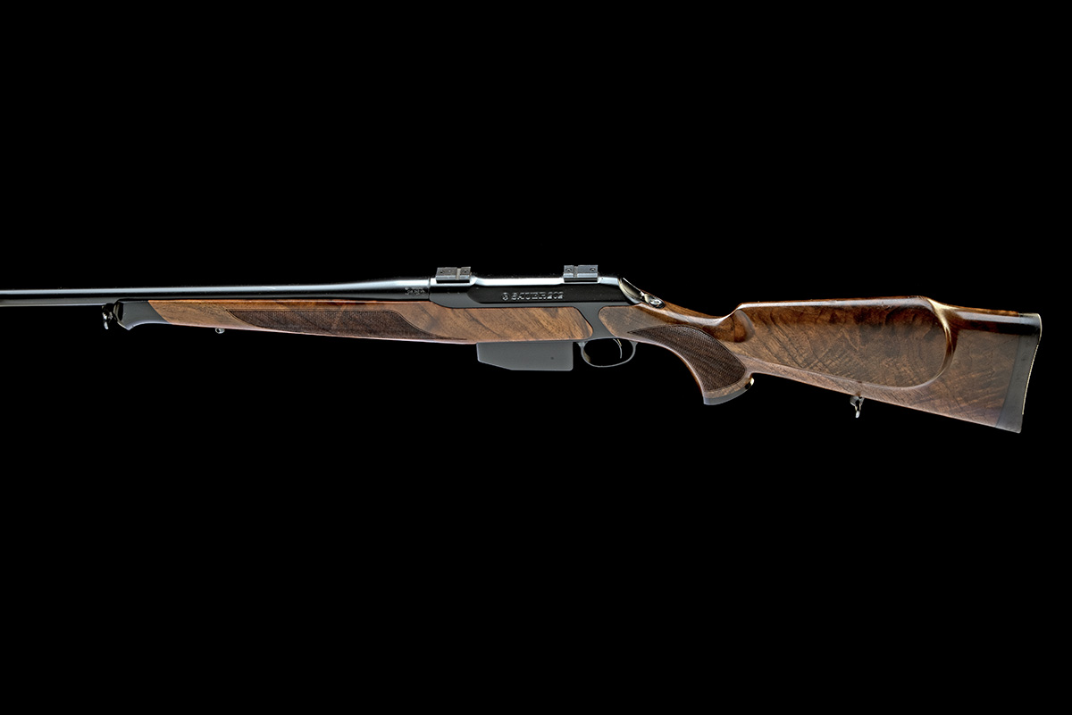for 2013, 22 1/4in. unsighted nitro barrel, threaded at muzzle (no cap), black receiver with rail mount bases, detachable box magazine, set trigger, 14 3/4in. pistolgrip stock with cheekpiece, monte carlo comb, right hand palm swell, quickly-detachable sling swivels and 3/4in. recoil pad, weight 8lb. 1oz.