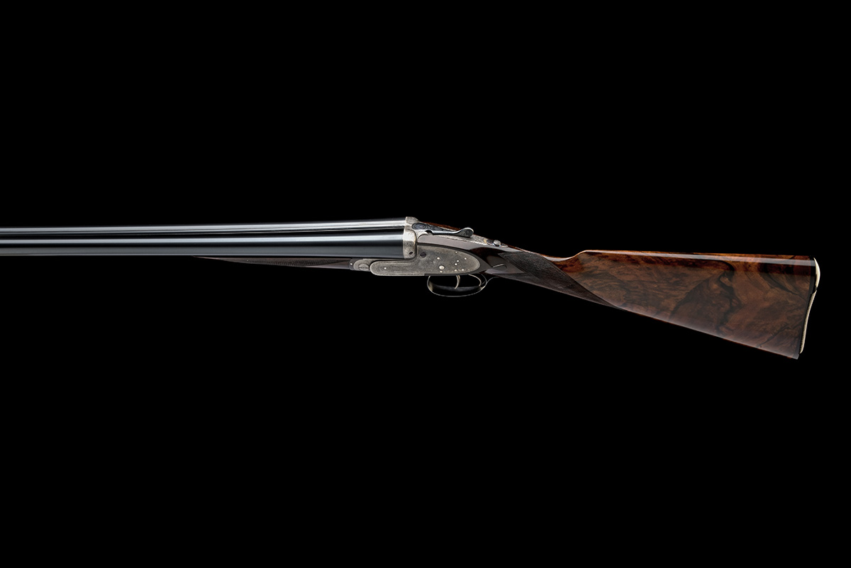 for 1912, 28in. nitro chopperlump barrels, the rib engraved 'HENRY ATKIN (FROM PURDEY'S) 41 JERMYN ST. LONDON. S.W.', 2 1/2in. chambers, bored approx. true cyl. and 1/2 choke, Atkin spring-opening action based on the Beesley / Purdey 1880 patent with 1909 model improved ejector, removable striker discs, automatic safety with gold-inlaid 'SAFE' detail, best fine acanthus scroll engraving with floral bouquets, the underside with 'HENRY ATKIN FROM PURDEY'S', retaining traces of likely renewed colour-hardening and finish, 14 7/8in. boldly-figured (possible replacement) stock including buttplate, weight 6lb. 8oz., in its brass-cornered oak and leather case