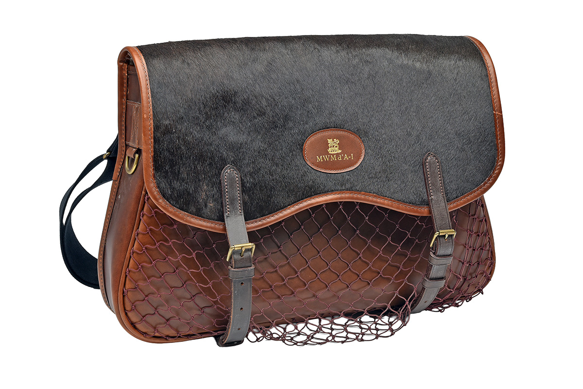 TWO LEATHER AND GAME FUR GAME BAGS,