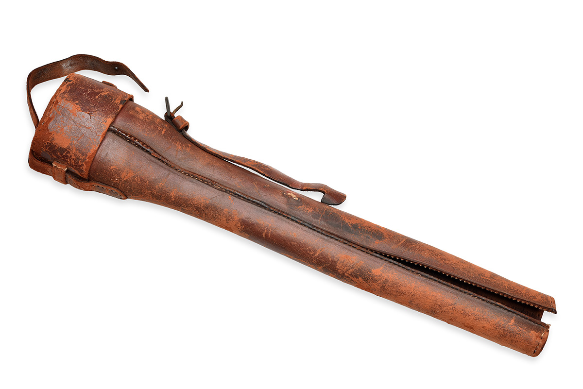 no visible serial number, circa World War One, with blued steel 15 3/4in. body marked 'MANUFACTURED BY THE WINCHESTER REPEATING ARMS CO.' over 'NEW HAVEN, CONN' and 'PATENTED FEBRUARY 9. 1909' flanked by 'A5' to the right side, sliding ring-mounts, the front full adjustable for windage and elevation, the foot bearing a British ordnance inspector's stamp and broad arrow device, the rear with locking ring behind, much original finish remaining and complete with its shaped leather carry-case (derelict, splits and losses)