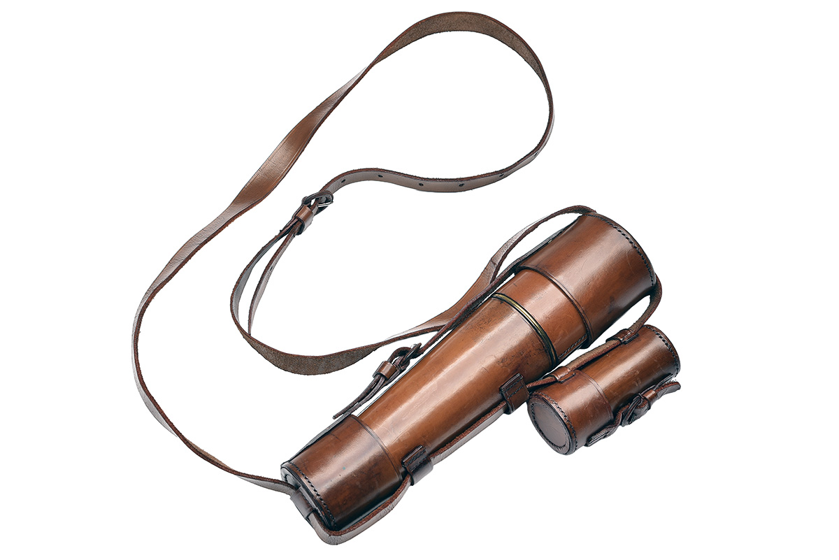 circa 1950, with leather covered 10in. body, three grey-green anodised draws, the last marked 'PARKER HALE, ARMY SIGNALLING' and 'MADE IN ENGLAND TEL. 6.', leather lens covers and a separate leather holder for the spare high power eye-piece, the whole appearing little used and in collector's external condition