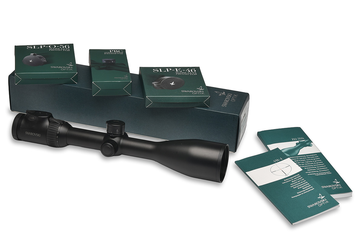 with 4W-I illuminated reticle, lens protectors, 30mm body, together with a PBC personalised ballistic cam regulated for .30-06 Springfield 51.80gr IMR 4064, an SLP-E-46 scope lens protector and a SLP-O-56 scope lens protector, all boxed with papers, untested